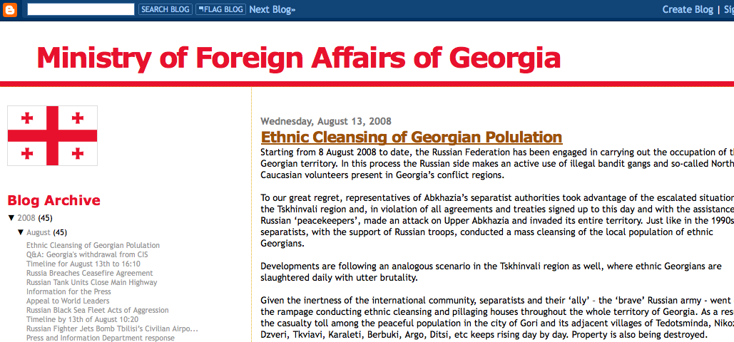 Por su parte Georgia ha estado censurando el acceso a sitios del gobierno ruso y expertos de Estonia estan haciendo lo posible por manterner las redes de Georgia funcionando. El Ministro de Asuntos Exteriores tuvo que abrir una cuenta en blogspot para ir informando del avance de los ataques.